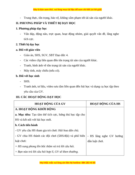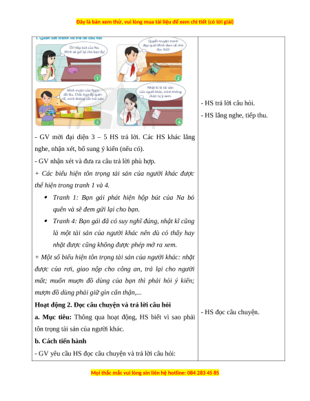 tôn trọng tài sản của người khác. b. Cách tiến hành