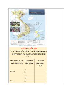 c. Sản phẩm: Phiếu học tập số 1 của HS về xác định và kể tên các trung tâm công nghiệp của HS.
