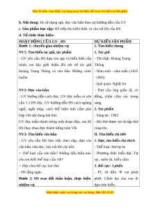 ộ dung: Hs sử d ng s ụ gk, đ c văn b ọ n ả theo sự hư ng d ớ n c ẫ a G ủ V c. Sản phẩm h c t ọ p: ậ HS ti p t ế hu ki n t ế h c và ứ câu tr l ả i ờ c a ủ HS d. T ch ổ ức thực hi n: ệ HOẠT Đ N Ộ G C A Ủ GV - HS D K Ự IẾN SẢN PHẨM Bư c ớ 1: chuy n gi ể ao nhi m ệ vụ 1. Tìm hi u chung ể NV1: Tìm hi u t ể ác gi , t ả ác ph m ẩ 1. Tác giả - GV yêu c u ầ HS d a ự vào sgk và hi u ể bi t ế c a ủ - Tên th t ậ : Hoàng Trung mình, em hãy gi i ớ thi u