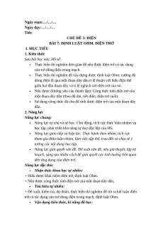 Ngày soạn:…/…/… Ngày dạy:…/…/… Tiết: CHỦ ĐỀ 3: ĐIỆN