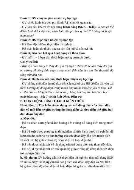 dẫn và mối liên hệ giữa cường độ dòng điện và hiệu điện thế giữa hai đầu đoạn dây dẫn a. Mục tiêu: