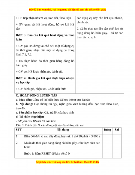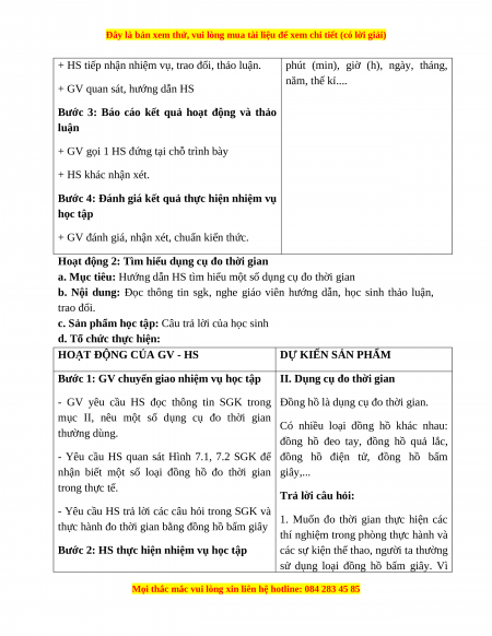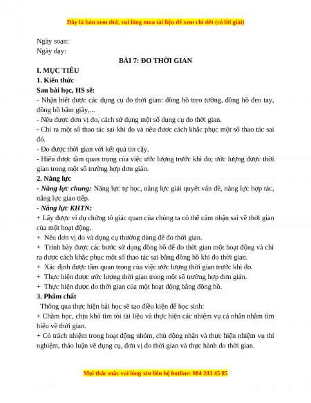 Ngày soạn: Ngày dạy: BÀI 7: ĐO THỜI GIAN I. MỤC TIÊU 1. Kiến thức Sau bài học, HS sẽ: