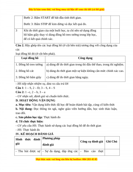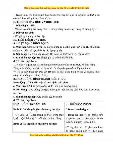 nghiệm, thảo luận về dụng cụ, đơn vị đo thời gian và thực hành đo thời gian.