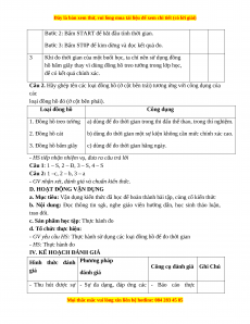 + Trình bày được các bước sử dụng đồng hồ để đo thời gian một hoạt động và chỉ