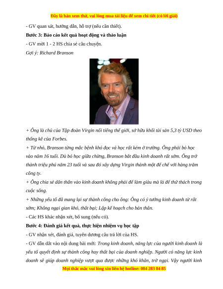 c. Sản phẩm học tập: Chia sẻ của HS về câu chuyện thành công của một doanh nhân và