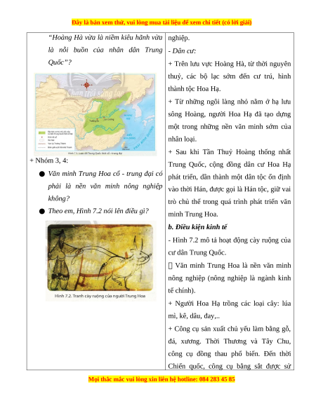 - Khai thác được tư liệu 7.1, 7. 2 để tìm hiểu khái quát về văn minh Trung Hoa cổ