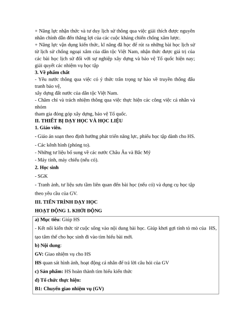 - Phân tích được vai trò, ý nghĩa của chiến tranh bảo sẽ Tổ quốc trong lịch sử Việt Nam.