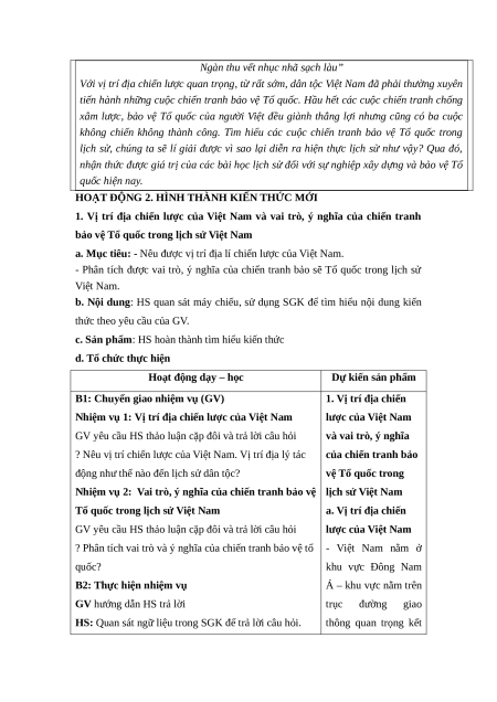 Giáo án Bài 7 Lịch sử 11 Kết nối tri thức (2024): Khái quát về chiến tranh bảo vệ tổ quốc trong lịch sử Việt Nam