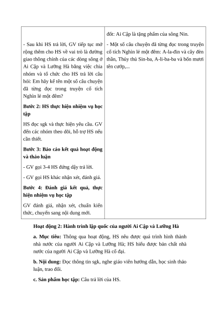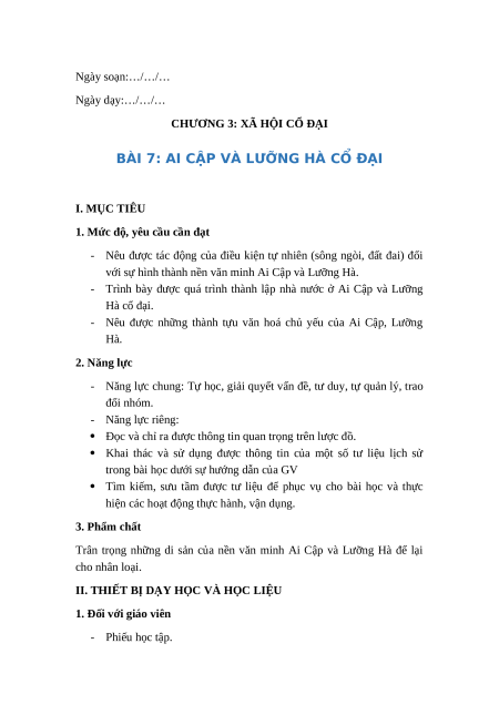 BÀI 7: AI CẬP VÀ LƯỠNG HÀ CỔ ĐẠI I. MỤC TIÊU