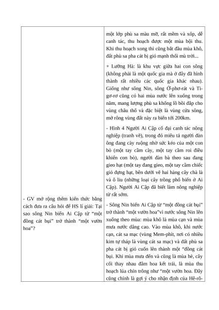 cách đưa ra câu hỏi để HS lí giải: Tại - Sông Nin biến Ai Cập từ “một đồng cát bụi”