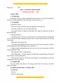 + Giới thiệu được những thành tựu chủ yếu của văn hoá Trung Quốc từ thế kỉ