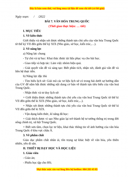 Giáo án Bài 7 Lịch sử 7 Cánh diều (2024): Văn hóa Trung Quốc