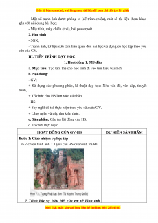 a. Mục tiêu: Tạo tâm thế cho học sinh đi vào tìm hiểu bài mới. b. Nội dung: - GV: