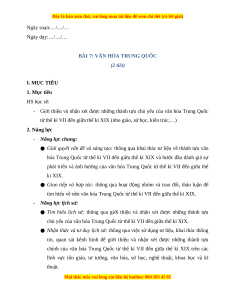 BÀI 7: VĂN HÓA TRUNG QUỐC (2 tiết) I. MỤC TIÊU 1. Mục tiêu HS học sẽ: