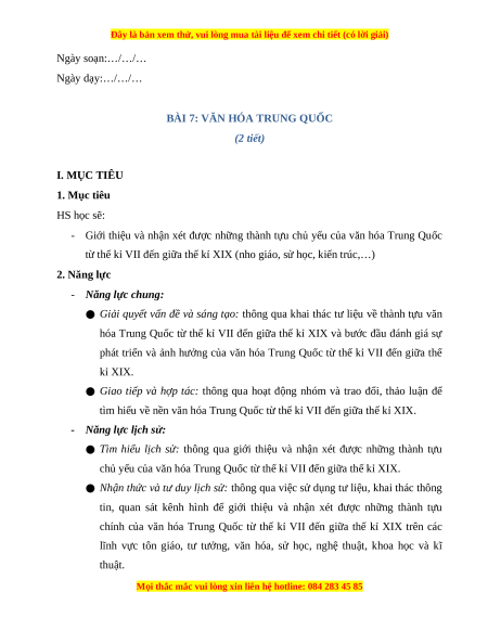đến giữa thế kỉ XIX. Chúng ta cùng vào Bài 7: Văn hóa Trung Quốc.