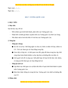 BÀI 7: VƯƠNG QUỐC LÀO I. MỤC TIÊU 1. Mục tiêu Sau bài học này, HS sẽ: