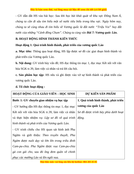 Giáo án Bài 7 Lịch sử 7 Kết nối tri thức (Phiên bản 2): Vương quốc Lào