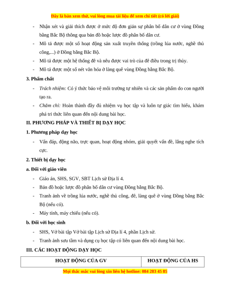 - Mô tả được một số nét văn hóa ở làng quê vùng Đồng bằng Bắc Bộ. 3. Phẩm chất