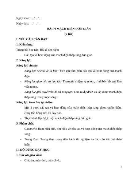 BÀI 7: MẠCH ĐIỆN ĐƠN GIẢN (2 tiết)