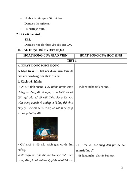 - Cấu tạo và hoạt động của mạch điện thắp sáng đơn giản. 2. Năng lực: