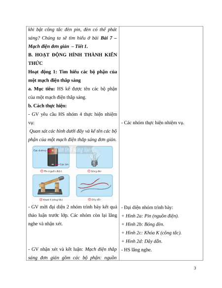 Giáo án Bài 7: Mạch điện đơn giản Khoa học lớp 5 Chân trời sáng tạo