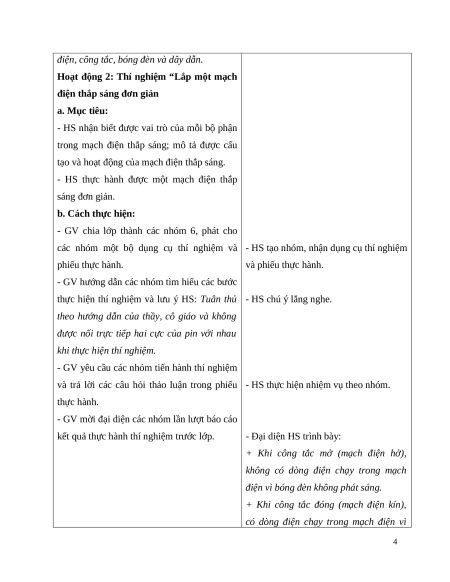 - HS thực hành được một mạch điện thắp sáng đơn giản. b. Cách thực hiện: