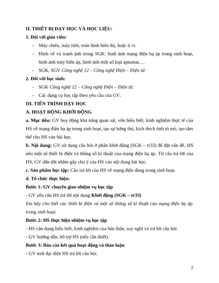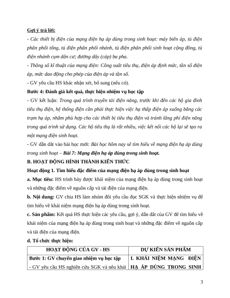 - GV dẫn dắt vào bài học mới: Bài học hôm nay sẽ tìm hiểu về mạng điện hạ áp dùng