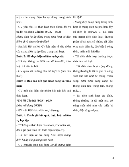 - GV yêu cầu HS thảo luận theo nhóm đôi và hoạt là mạng điện ba pha bốn dây