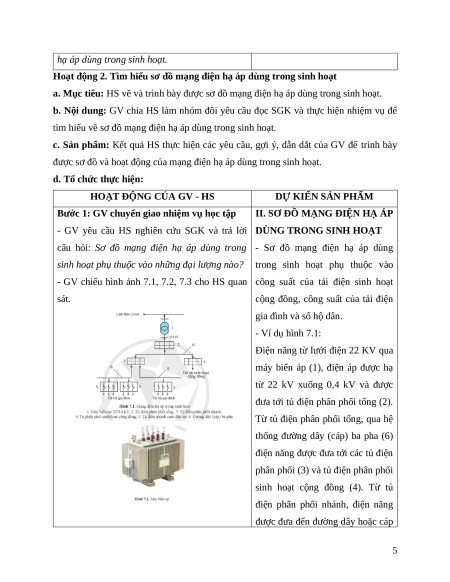 Giáo án Bài 7: Mạng điện hạ áp dùng trong sinh hoạt (2024) Công nghệ Điện - Điện tử 12 Cánh diều