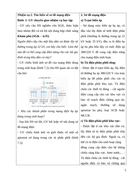 - GV chuyển sang nội dung Sơ đồ mạng điện. 4