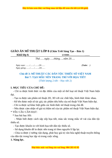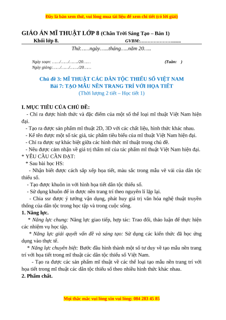 GIÁO ÁN MĨ THUẬT LỚP 8 (Chân Trời Sáng Tạo – Bản 1)