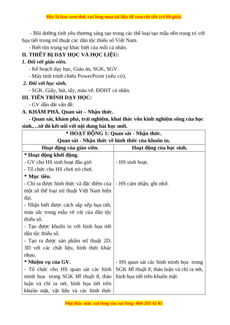 họa tiết trong mĩ thuật các dân tộc thiểu số theo nhiều hình thức khác nhau. 2. Phẩm chất.