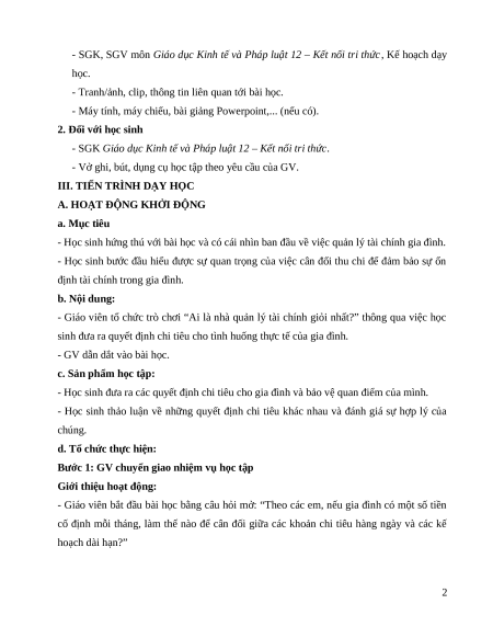 - Tham gia lập kế hoạch và thực hiện kế hoạch thu, chi hợp lí trong gia đình. 2. Năng lực