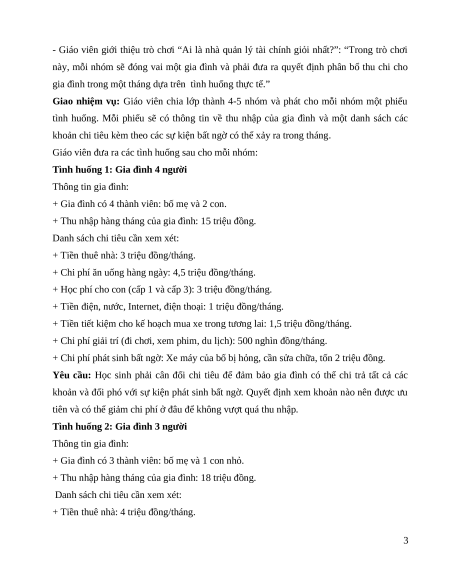 - Giáo viên bắt đầu bài học bằng câu hỏi mở: “Theo các em, nếu gia đình có một số tiền