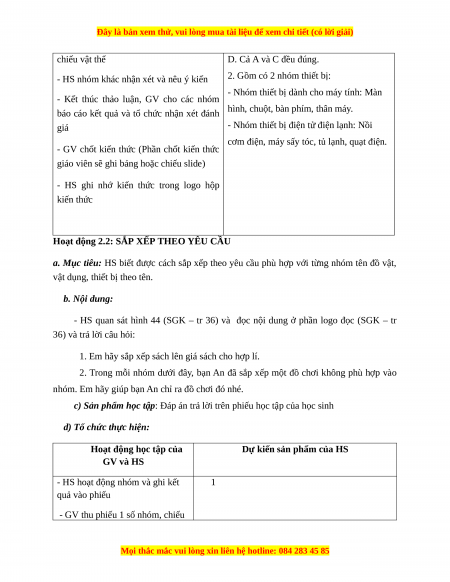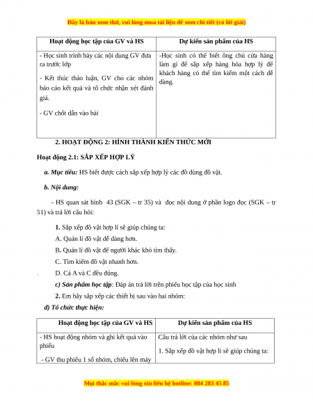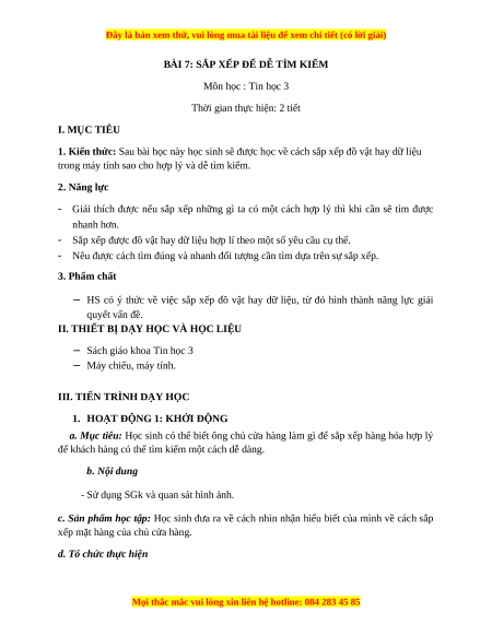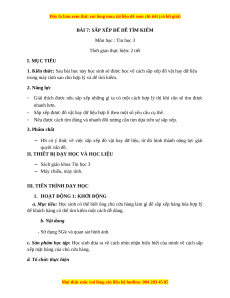 1. Kiến thức: Sau bài học này học sinh sẽ được học về cách sắp xếp đồ vật hay dữ liệu