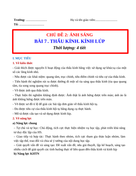 - Mô tả được cấu tạo và sử dụng được kính lúp. 2. Về năng lực a) Năng lực chung