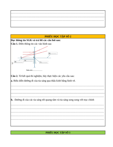 Câu 2. Thực hiện thí nghiệm chiếu chùm sáng hẹp song song qua các thấu kính (như Hình