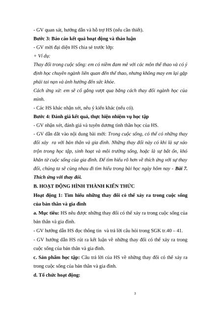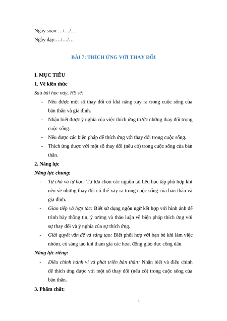 Giáo án Bài 7: Thích ứng với thay đổi Giáo dục công dân 9 Cánh diều