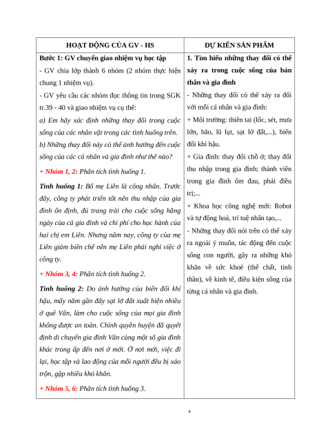 - Nêu được một số thay đổi có khả năng xảy ra trong cuộc sống của bản thân và gia đình.