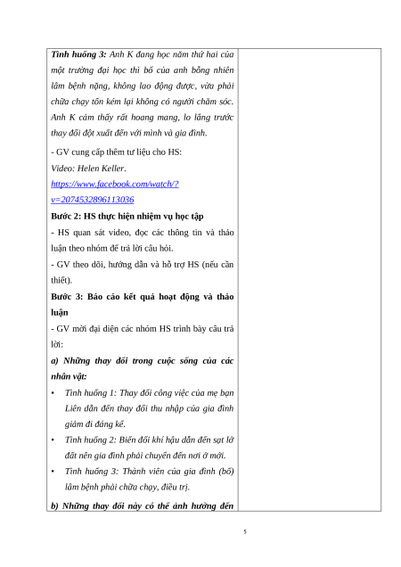 Hoạt động 1: Tìm hiểu những thay đổi có thể xảy ra trong cuộc sống