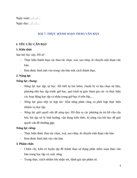 hôm nay – Bài 7: Thực hành soạn thảo văn bản.