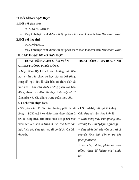 - Đưa được hình ảnh vào văn bản. 3. Phẩm chất: