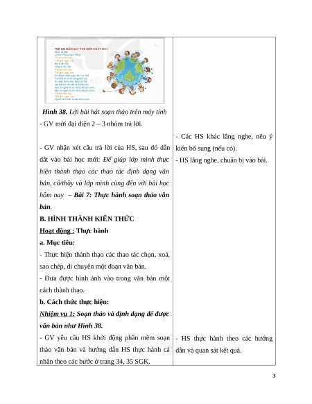 Giáo án Bài 7: Thực hành soạn thảo văn bản Tin học lớp 5 Kết nối tri thức