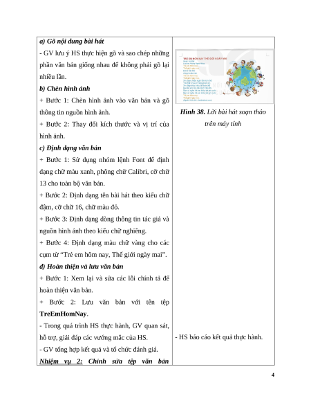 quan sát văn bản ở Hình 38 và cho biết cần cỡ chữ, kiểu chữ (đậm, nghiêng).