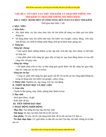 CHỦ ĐỀ C: TỔ CHỨC LƯU TRỮ, TÌM KIẾM VÀ TRAO ĐỔI THÔNG TIN