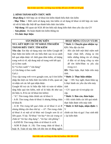 NV1: KẾT HỢP CÁC TỪ KHOÁ TÌM KIẾM