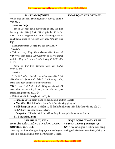- Mục Tiêu: + Biết cách sử dụng máy tìm kiếm có sử dụng từ khoá và kết hợp các toán