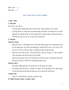 BÀI 7: BÀI TẬP VỀ VẬT LÍ NHIỆT I. MỤC TIÊU 1. Kiến thức