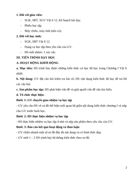 - Nêu được những kiến thức cơ bản đã học về nội dung vật lí nhiệt.