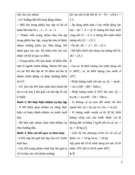 b. Nội dung: GV hướng dẫn HS giải một số bài toán vật lí nhiệt trong SGK.